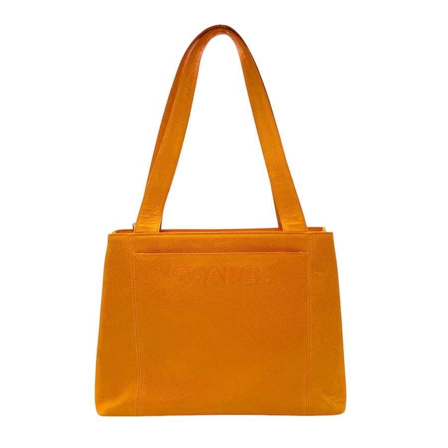 シャネル CHANEL ショルダーバッグ キャビアスキンレザー オレンジ シルバー レディース n0769